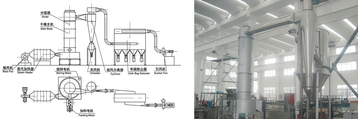 ● 干燥室內周向氣速高,物料停留時間短,有效防止物料粘壁及熱敏性物料變質現象,達到快速、小設備、大生產。