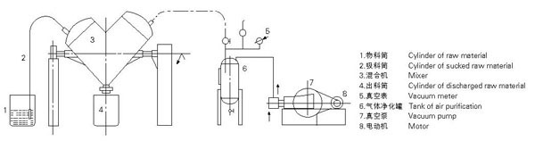 本機適用于制藥、化工、食品等行業兩種以上干粉狀、顆粒狀物料的混和